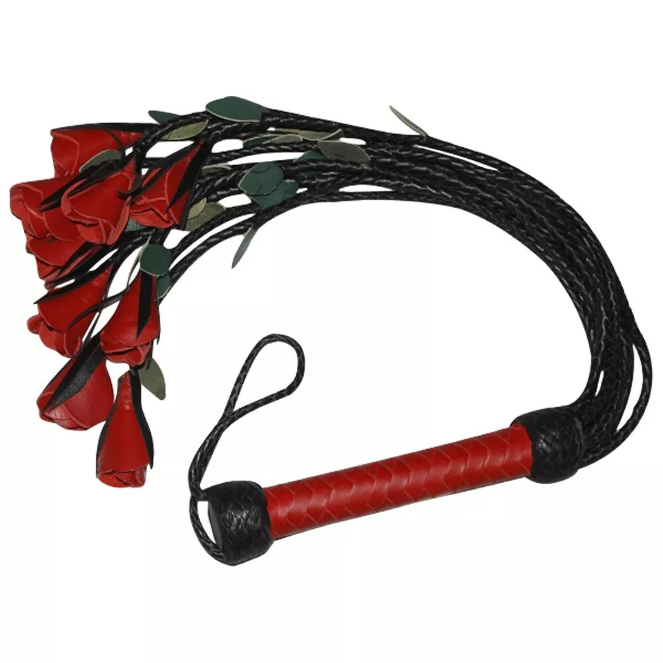 Handcrafted Genuine Cowhide Leather Flogger with Red Roses