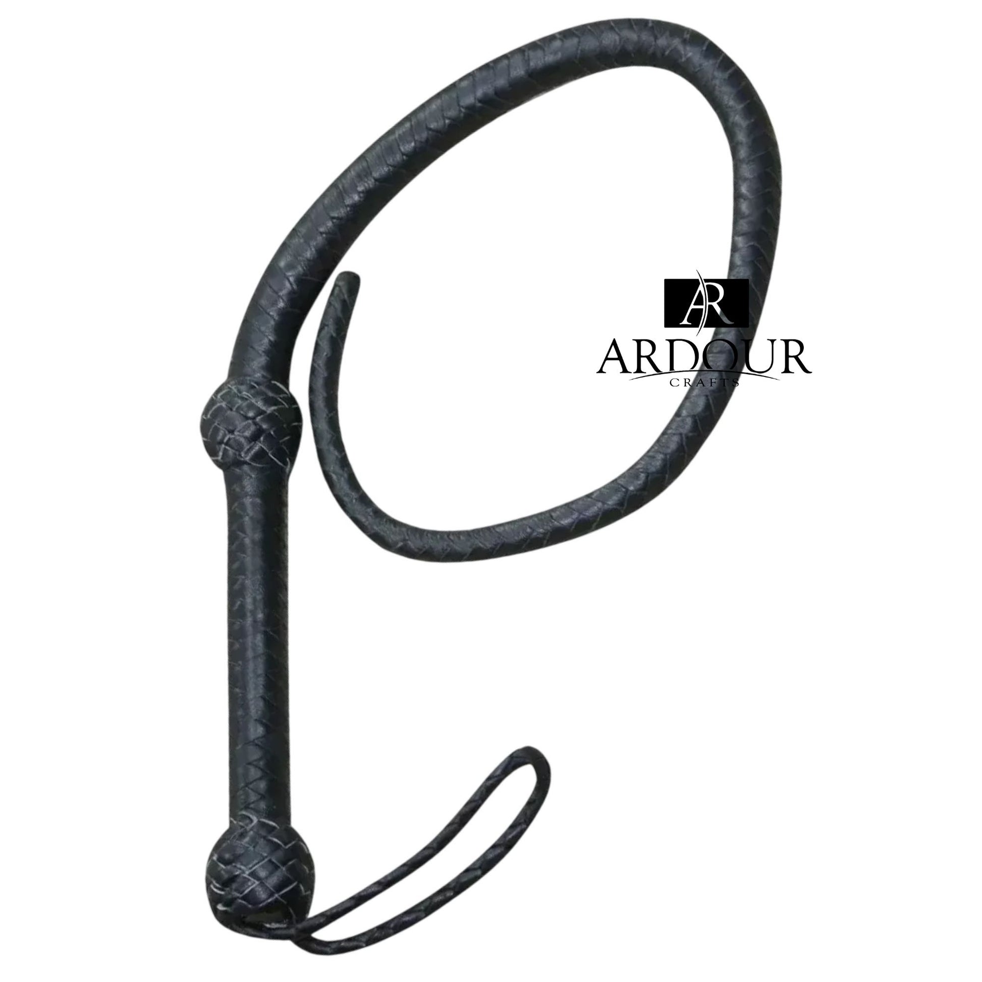 3 Feet Hand Braided Leather Flogging Whip 8 Plait Rope Core with Hardwood Handle